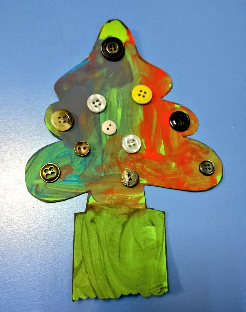 «Árbol de Navidad» Pintura de dedos, botones y cola blanca sobre cartulina #byJulia pic.twitter.com/j4d8iFDHPa
